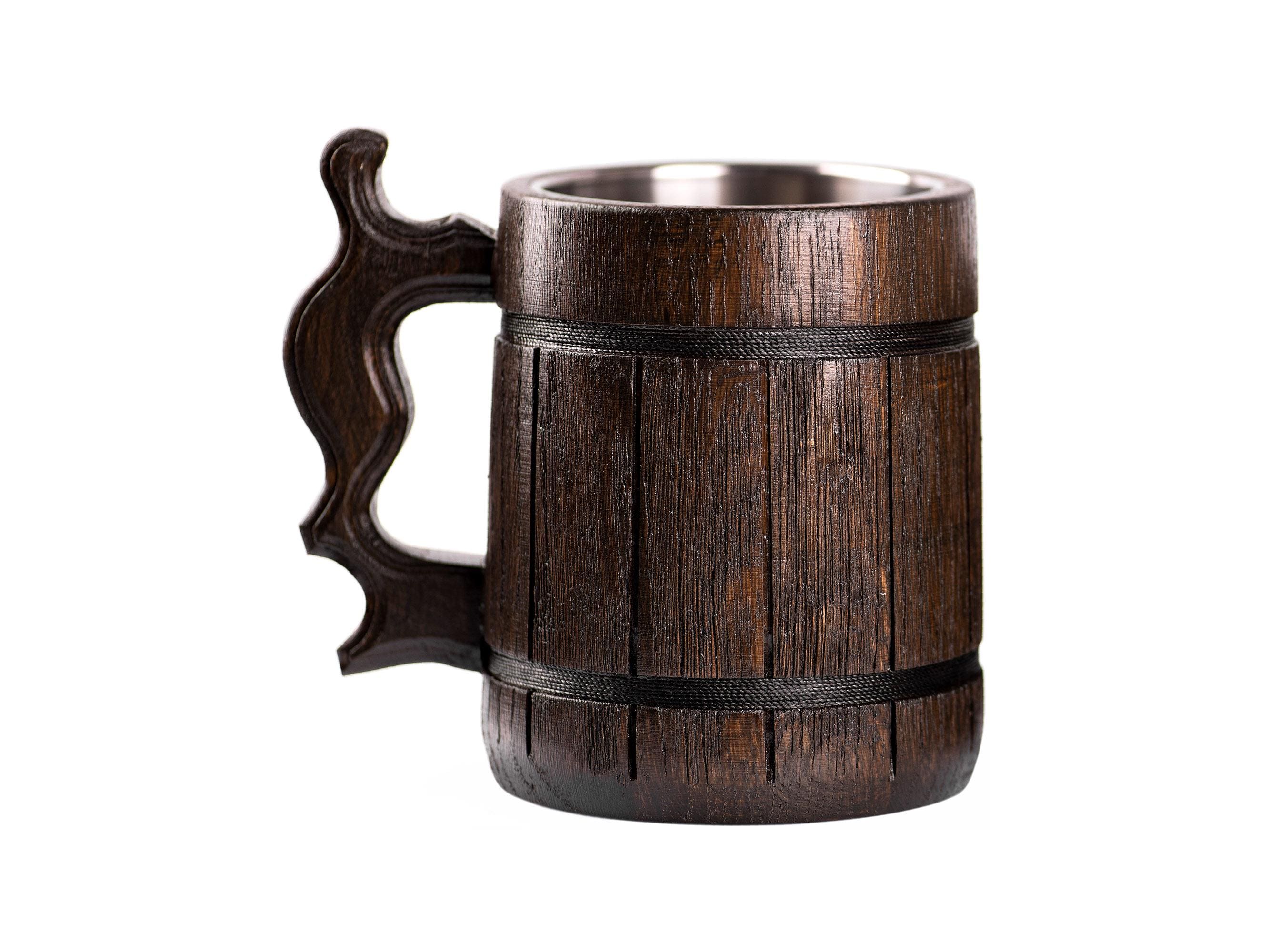 Handcrafted wooden beer mug, handcrafted from natural oak.