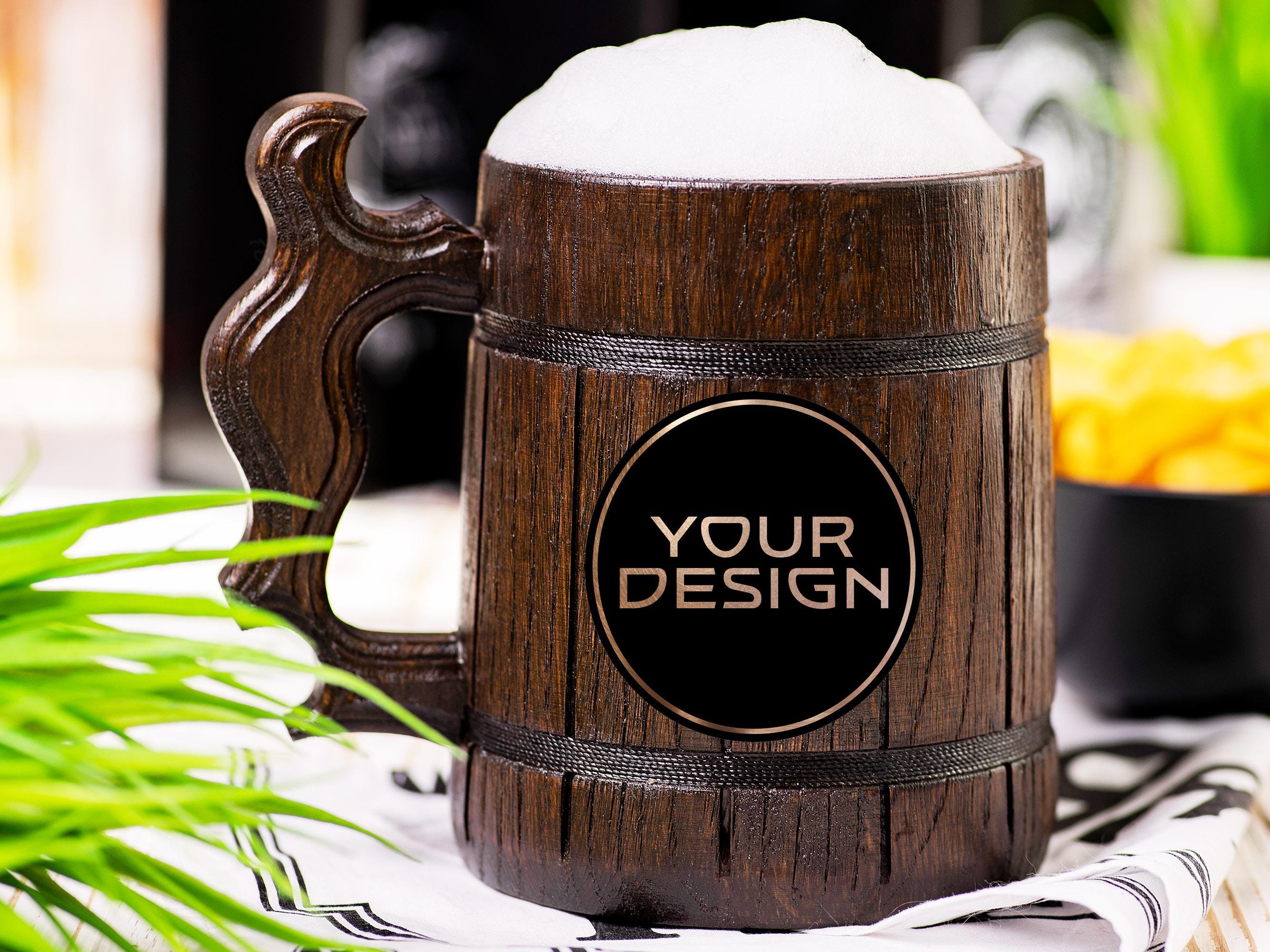 Professionally handcrafted wooden beer mug is made of natural oak-tree wood.