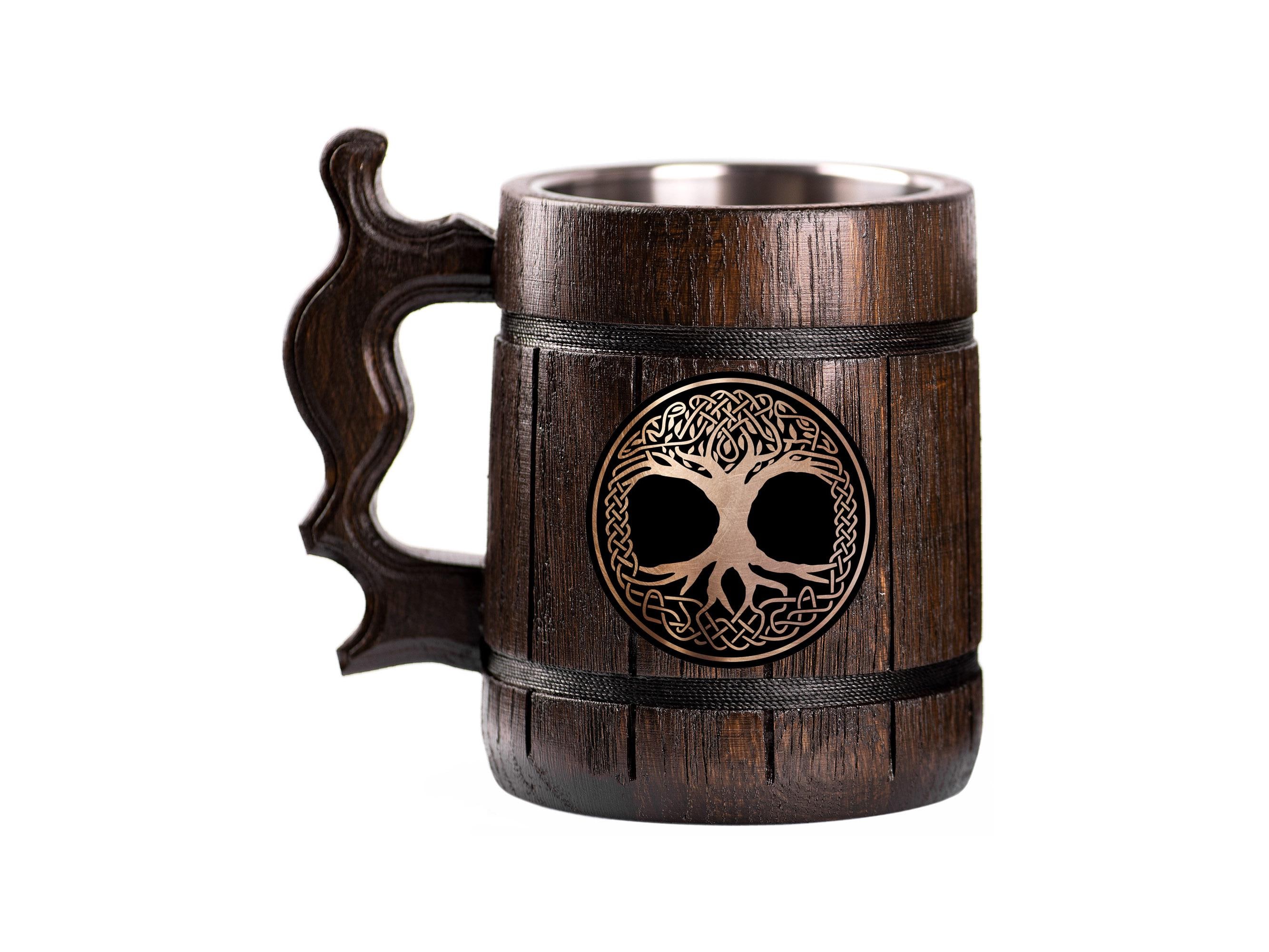 Handcrafted wooden beer mug, handcrafted from natural oak.